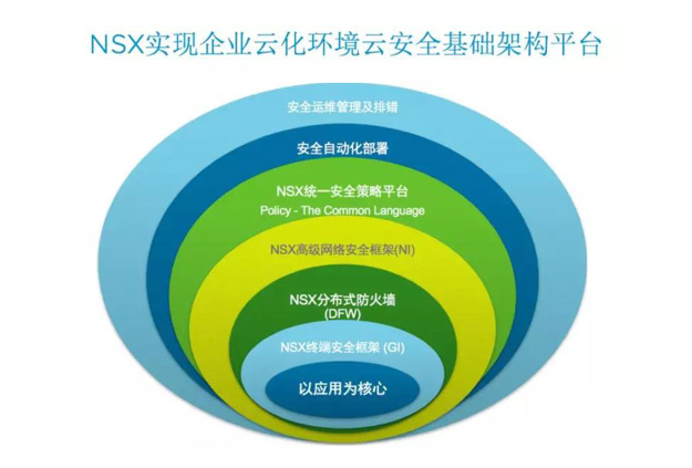NSX可以助力企業IT云化環境,實現層次化云安全基礎架構,為企業云化環境”戴口罩“,微隔離,深入抗病毒和入侵防御。