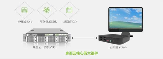 ? ? ? ?深信服aDesk桌面云方案,是基于融合架構的新型桌面模式,通過深度整合服務器虛擬化、桌面虛擬化及存儲虛擬化,只需桌面云一體機和云終端兩種設備,即可實現云平臺的快速交付,為用戶提供操作體驗及軟硬件兼容性媲美PC,更安全、更高效的云桌面。